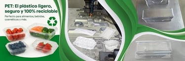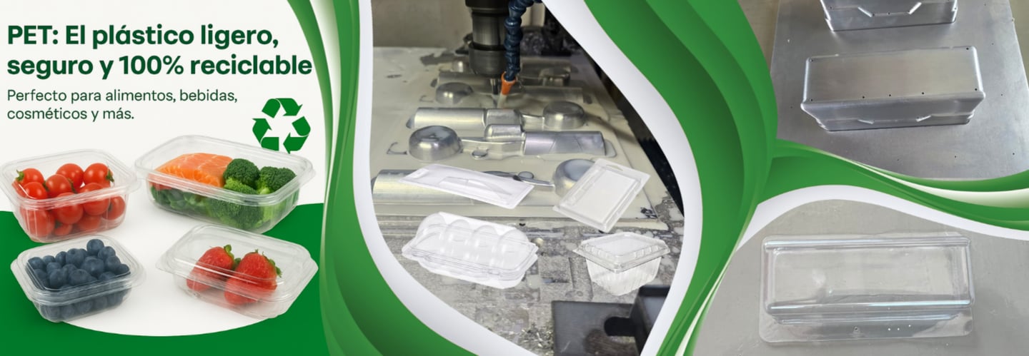 👉 Es muy usado en bandejas de PET para alimentos, envases de repostería, charolas para frutas/verduras, blisters y empaques transparentes.